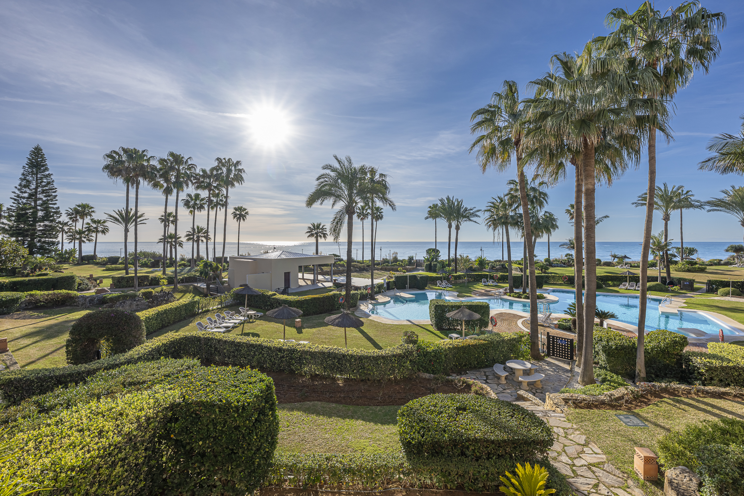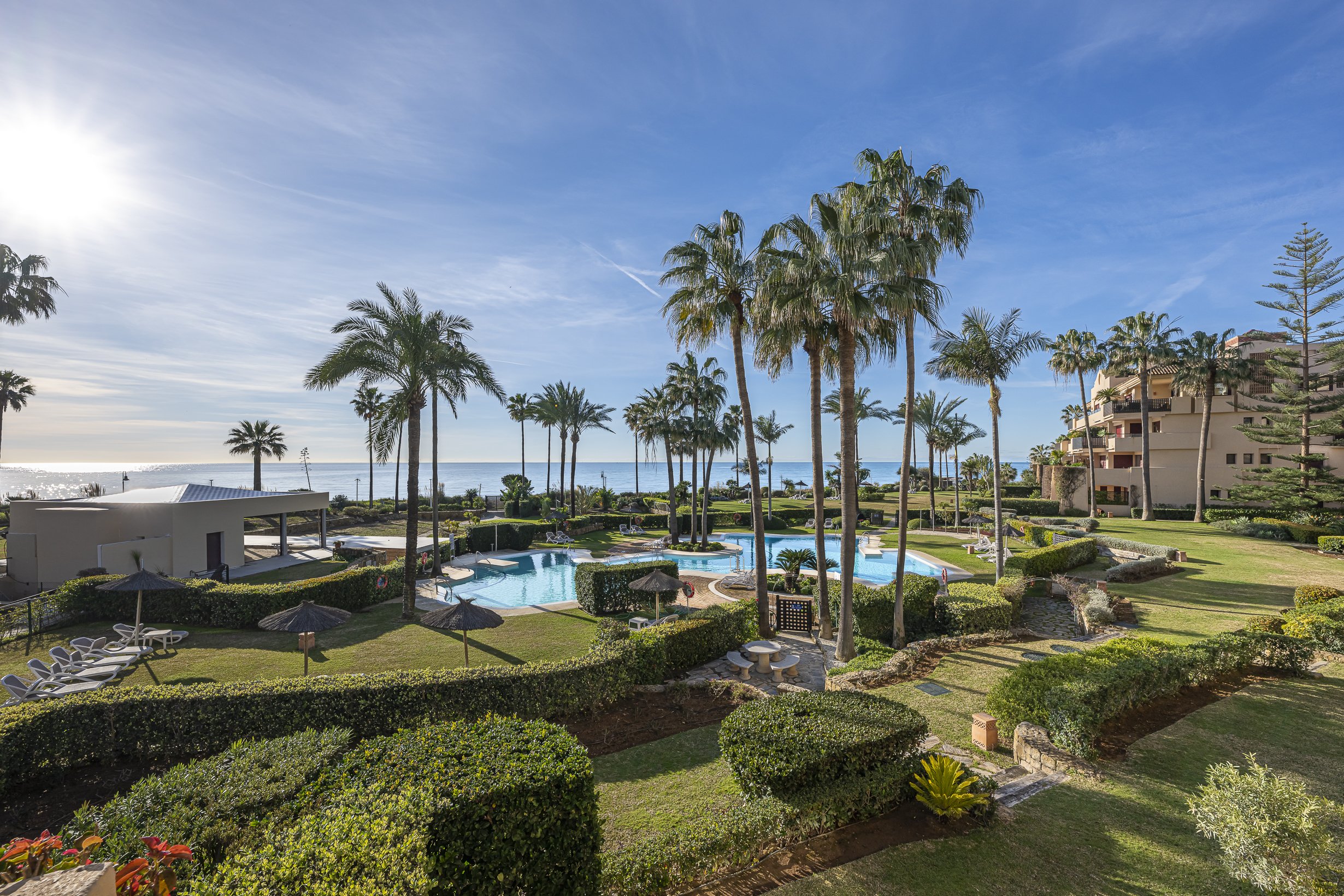 Located in the established beachfront community of Costalita del Mar, on the New Golden Mile, this middle-floor apartment enjoys a privileged frontline position just steps from the sea. The gated development offers tropical landscaped gardens, a large communal pool, and direct beach access, ensuring security, privacy, and a prime coastal setting between Estepona and Marbella.