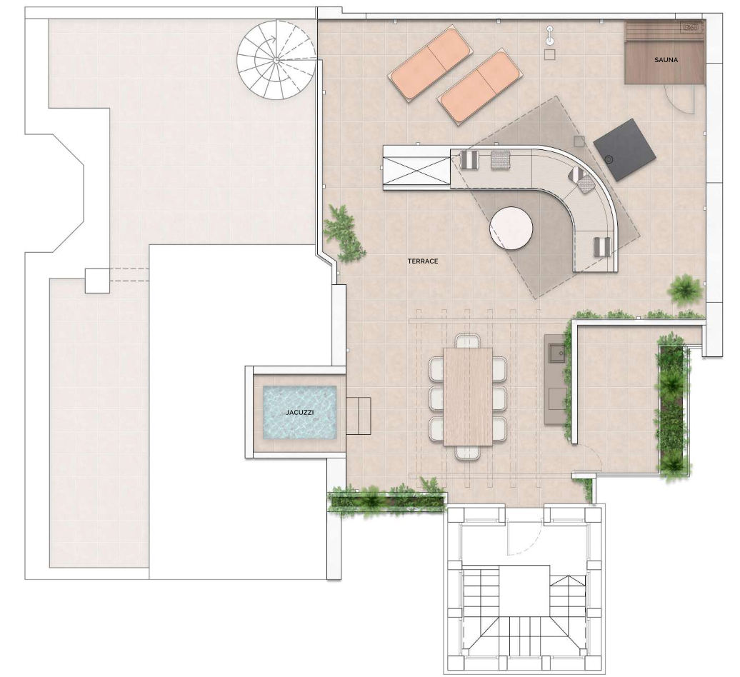 This beautifully reimagined 3-bedroom penthouse has undergone a complete and luxurious renovation, resulting in a contemporary home with a bright and spacious layout. The main level features generous living and dining areas that open onto a sun-filled terrace, while the expansive rooftop terrace provides a true private oasis with a jacuzzi and sauna, ideal for sunset relaxation or year-round wellness in complete privacy.
